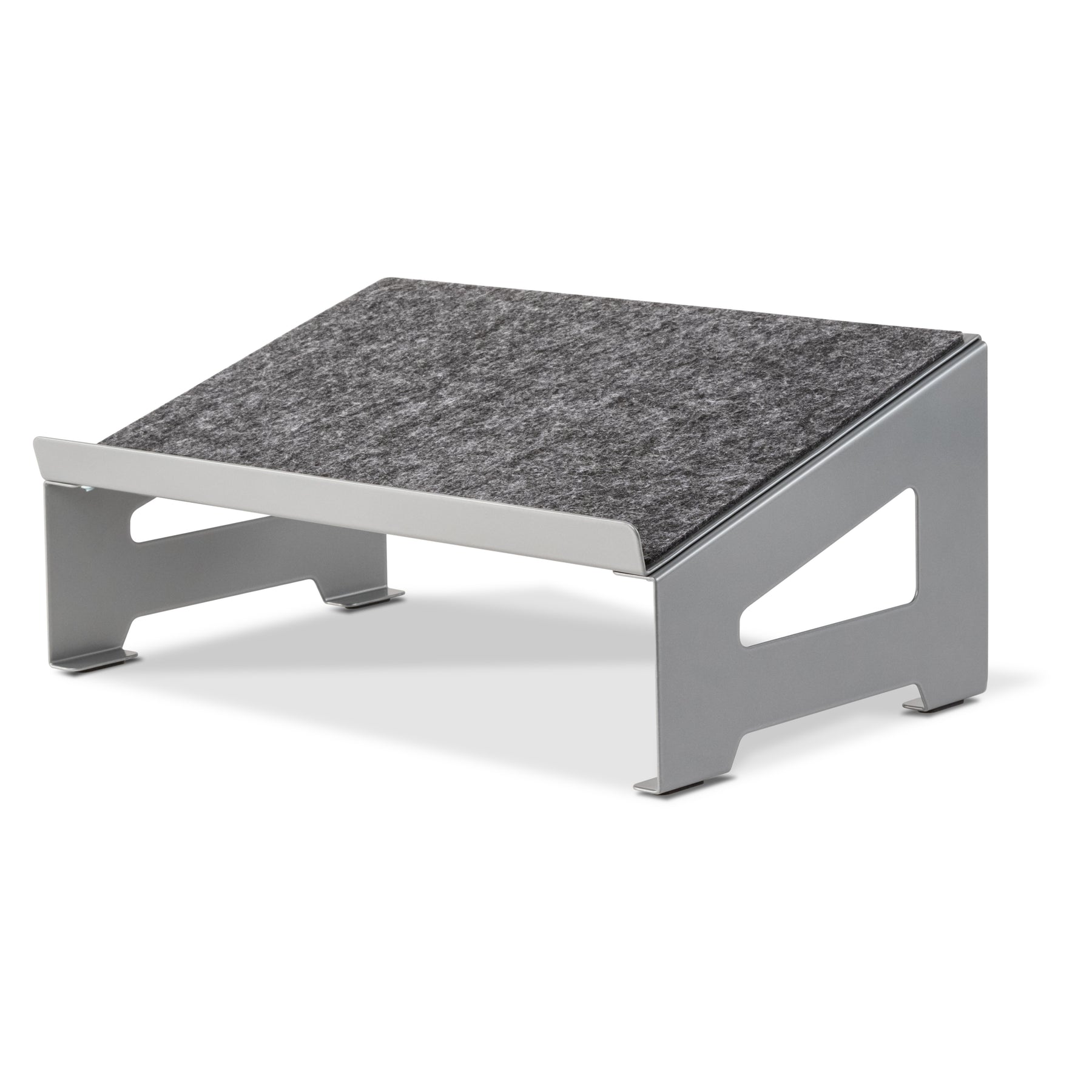 Enhance your workspace with the TechStyle Laptop Stand, made from durable powder-coated steel for a sleek, modern look. The slanted top raises your laptop to an ergonomic height, reducing neck and eye strain. A front lip keeps your laptop secure, while soft felt protects it from scratches. The open underside offers storage space, and non-slip rubber feet ensure stability and protect your desk. Supports laptops up to 17” and 20 lb.