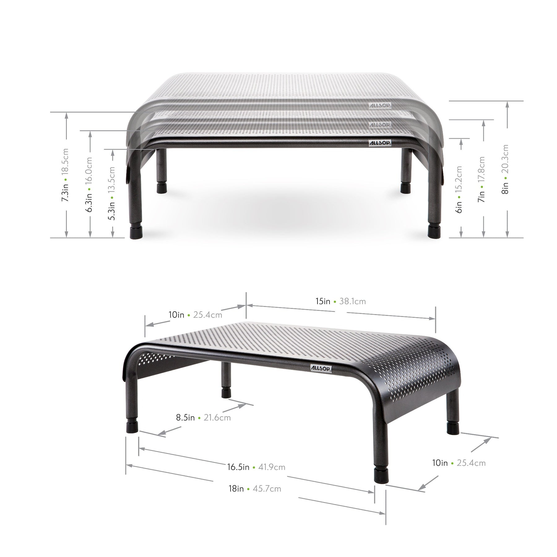 Using a simple push-pin system with three settings, you can easily raise your monitor to 6" , 7" or 8" off your desk for a comfortable, ergonomic viewing experience.