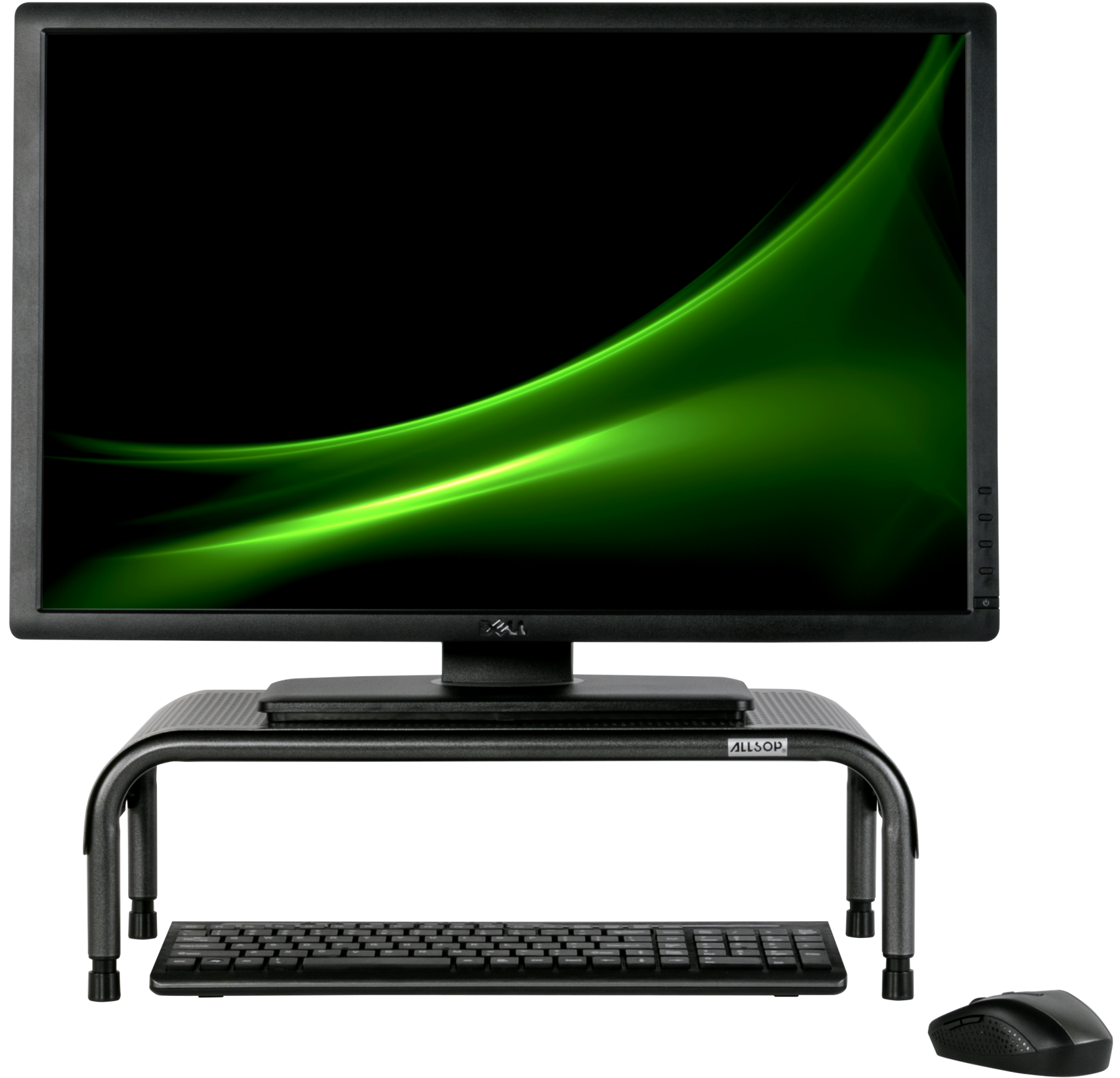 Studio image Allsop Ergo 3 Adjustable Height Monitor Stand with monitor keyboard and mouse