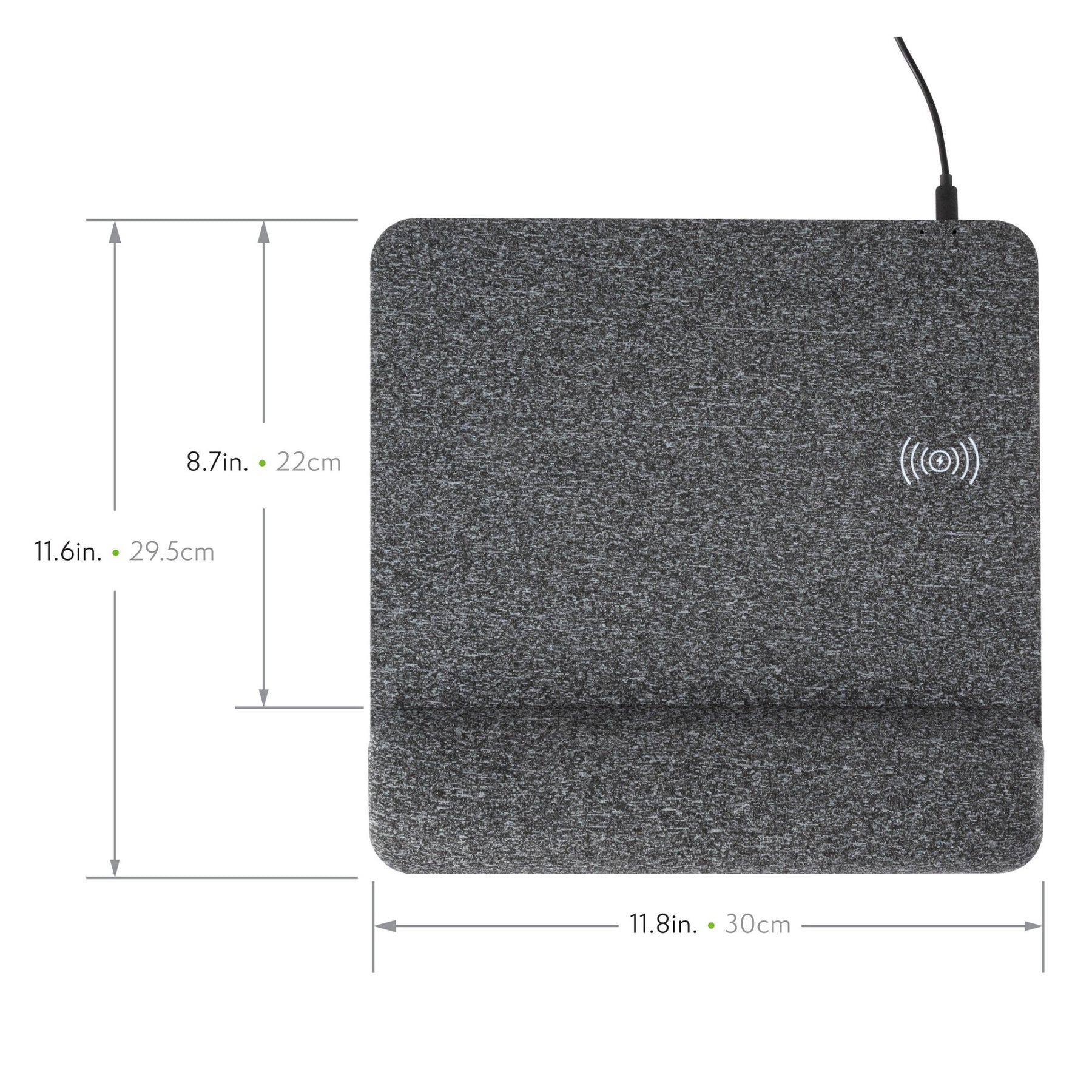 The PowerTrack Plush Wireless Mousepad provides ultra-soft comfort to your wrist and forearm while offering an easy and convenient way to charge your wireless devices. Featuring a 10W charging system, the PowerTrack Plush charges Qi-compatible devices wirelessly when they are placed on the mousepad charging area. The generously sized 11.6" x 11.8" mousepad is covered in a responsive fabric finish and incorporates a multi-layer foam supportive wrist rest to relieve wrist strain and provide ergonomic comfort. Comes with a 39" (1 meter) USB to USB-C cord for power.